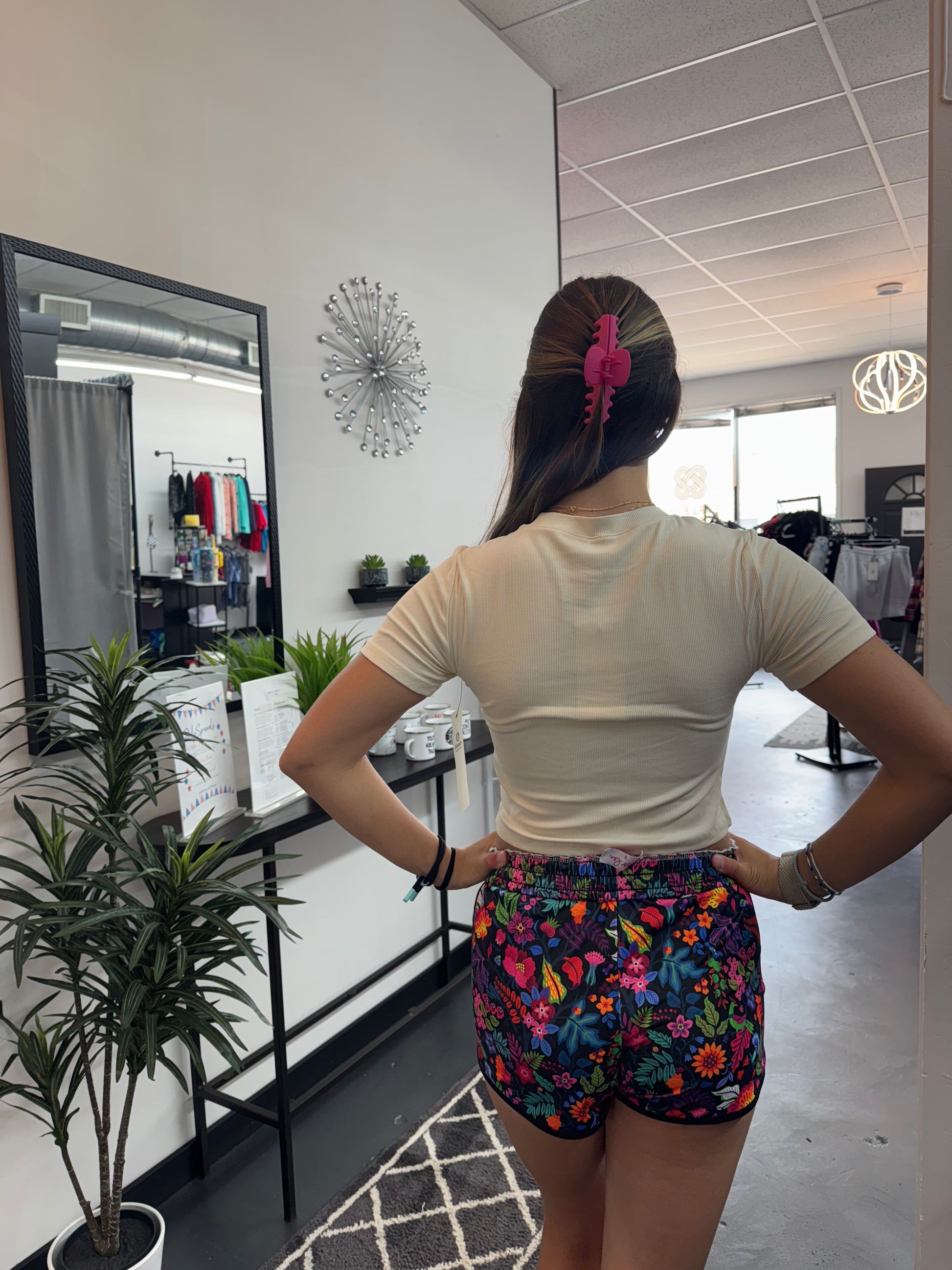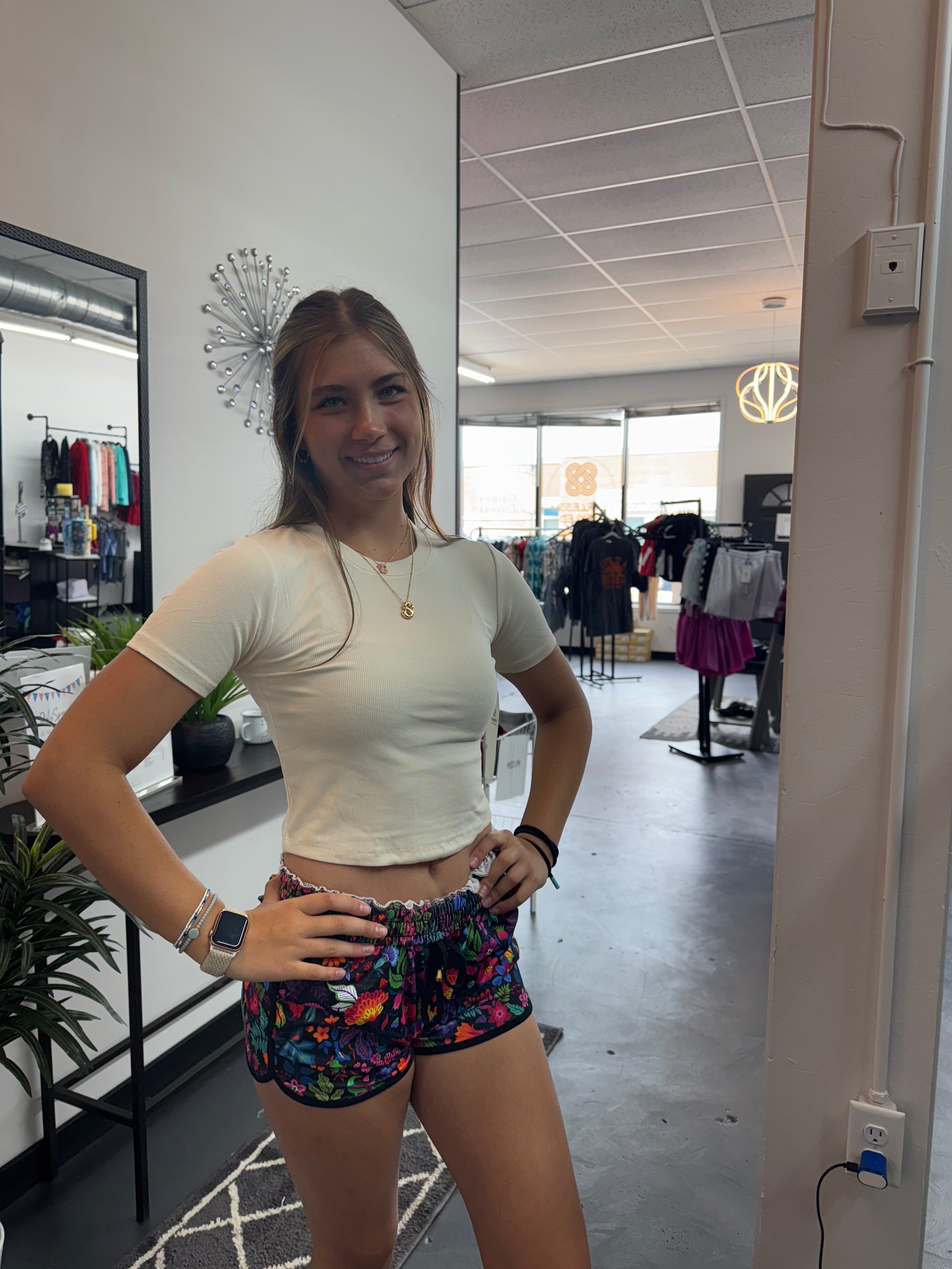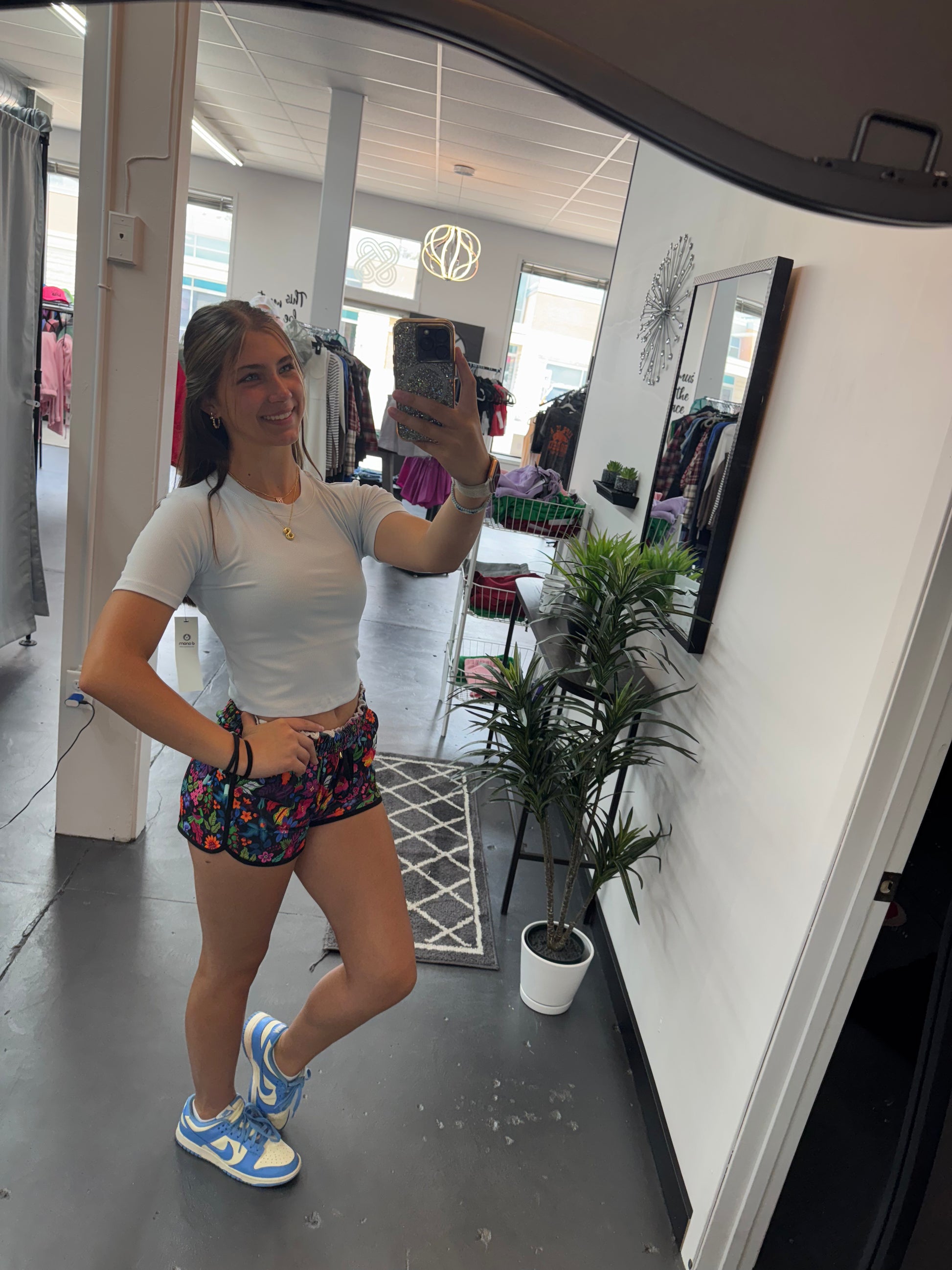 Whether as a workout top (worn over a Mono B sports bra and a pair of Mono B leggings) or as a cute top (matched with a denim item), this cropped tee is as versatile as it is comfortable. It has short sleeves, a rounded neckline, and a form-fitting silhouette.